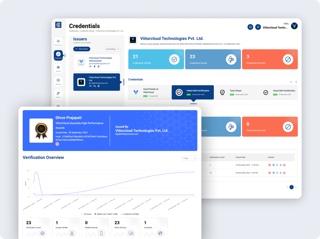 Track issuance data and gain insights into credential usage with built-in analytics.