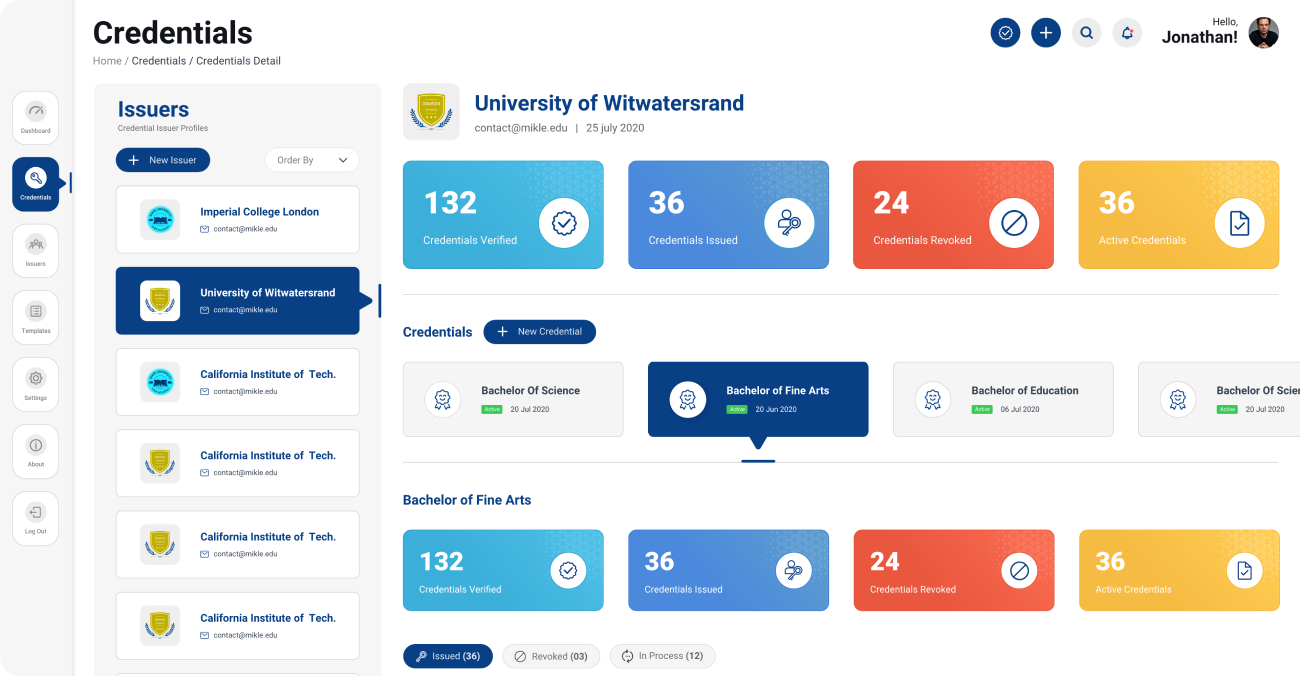 Track, manage, and search issued credentials with ease.